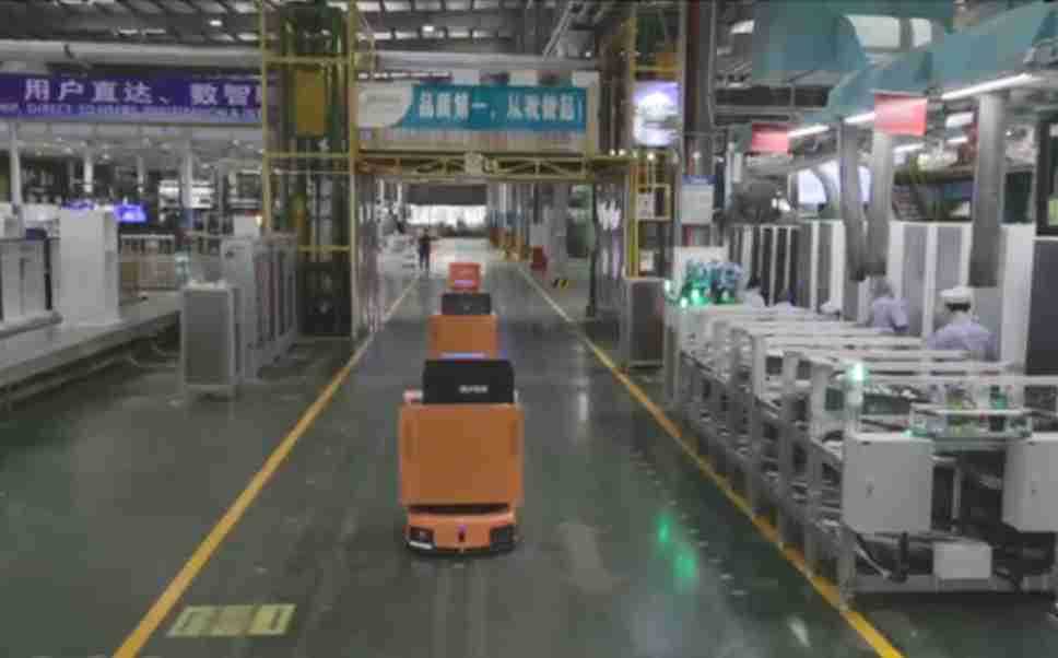 为车载冰箱物流配送打造的智能解决方案,,,包含产中物流通过潜伏举升AMR搬运至线边,,,,产后成品物流智能仓储,,,流程包含产中物流智能齐套入库,,线边安灯叫料AMR智能配送至线边,,,,成品入库、、、、出库,,通过无人堆高车机器人,,,,智能仓储管理替代人工作业管理,,,,实现更高存储、、、、更高效率、、、、更具柔性化的解决方案。。。。