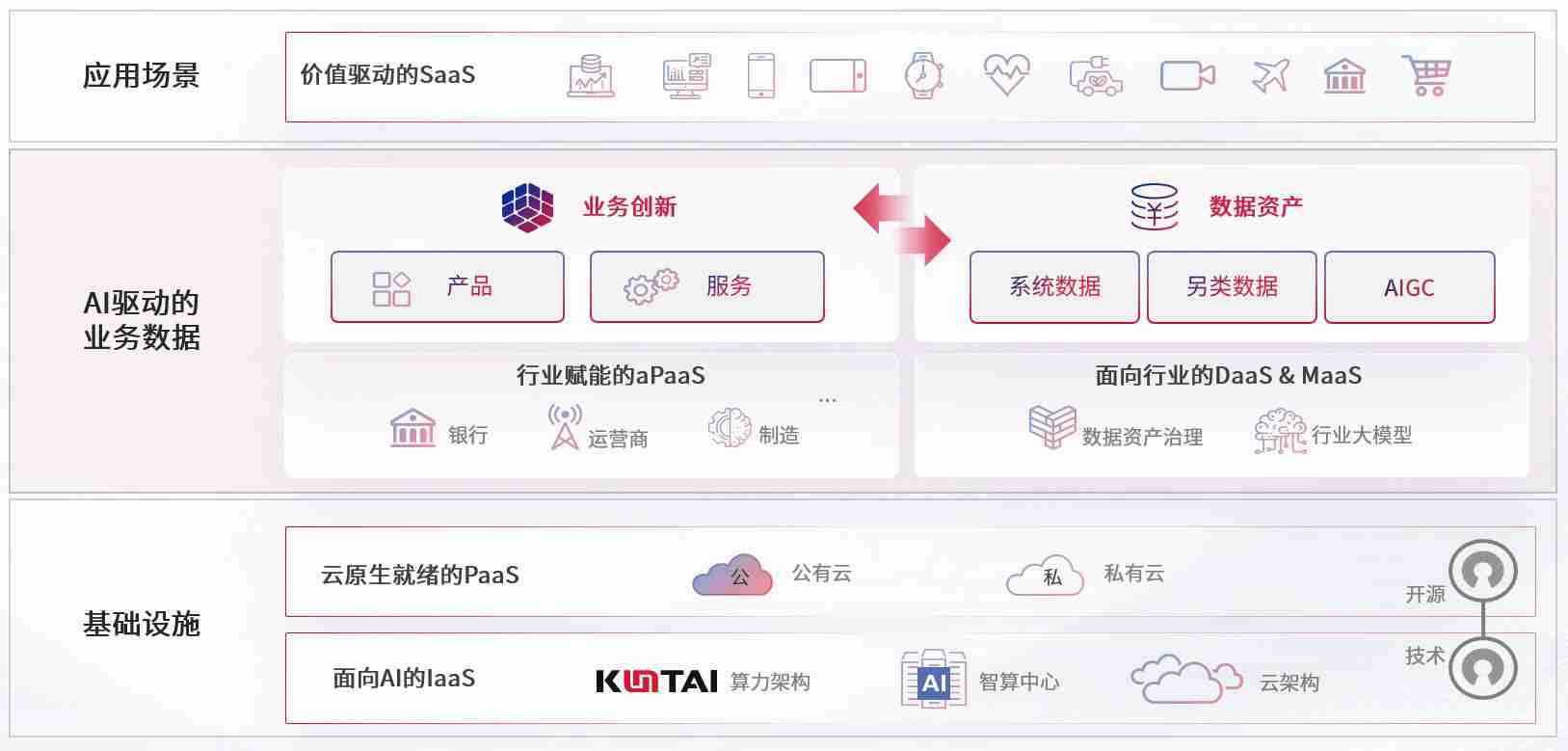 数字时代,,围绕企业数字化转型的关键要素,,牛牛游戏数码开创性的提出数云融合战略和技术体系框架,,,着力在云原生、、、、数字原生、、AI原生和信创产业上架构产品和服务能力,,,为处在不同数字化转型阶段的快消零售、、、、汽车、、金融、、、、医疗、、、政企、、、、教育、、、运营商等行业客户提供泛在的敏捷IT能力和融合的数据驱动能力,,,,构建跨界融合创新的数字业务场景和新业务模式,,,,助力企业级客户建立面向未来的核心能力和竞争优势,,全面推动社会的数字化、、智能化转型升级。。