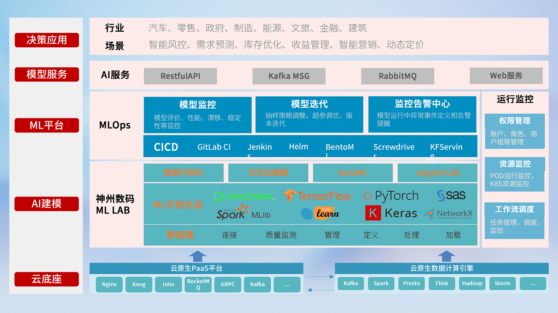 数据+模型双引擎驱动,,面向智能服务场景,,快速灵活利用AI技术,,,支持业务决策,,,,助力企业智能化转型破局。。